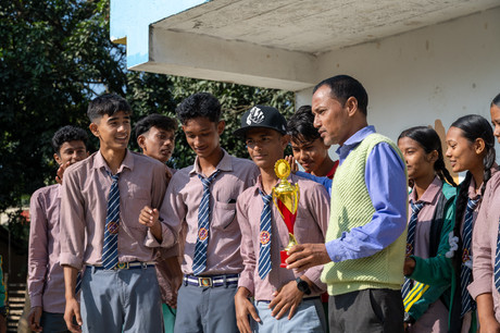 Im November 2024 hatten wir im Westen Nepals in Bardia die Möglichkeit eine Schule zu besuchen. Die Schüler waren im Alter von 5 bis etwa 16 Jahren. Zu Beginn des Schultages wird erst einmal Aufstellung im Schulhof genommen. Bei unserem Besuch gab es gerade den Sieg über eines Schulpokals im Basketball zu feiern. Besonders beeindruckend war der Eifer der Kinder etwas Neues zu lernen.